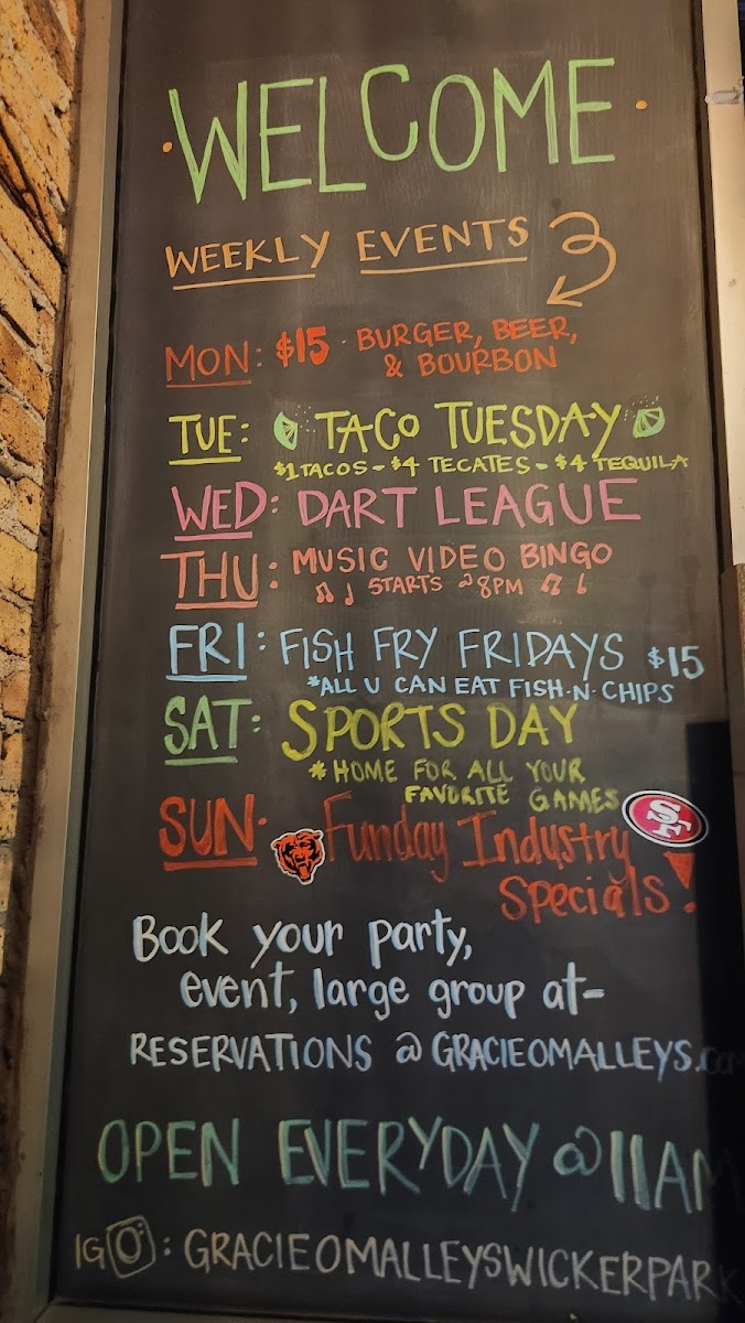 Welcome to Gracie O' Malley's Wicker Park, a vibrant sports bar nestled in Chicago's lively Wicker Park neighborhood. Known for its inviting atmosphere and an Irish twist, this bar offers more than just the thrill of the game. The layout features two distinct bars, promoting excellent drink service and spaces for relaxing. Guests rave about the Gracie O' Burger, often hailed as one of Chicago’s best, always cooked to perfection and bursting with flavor.